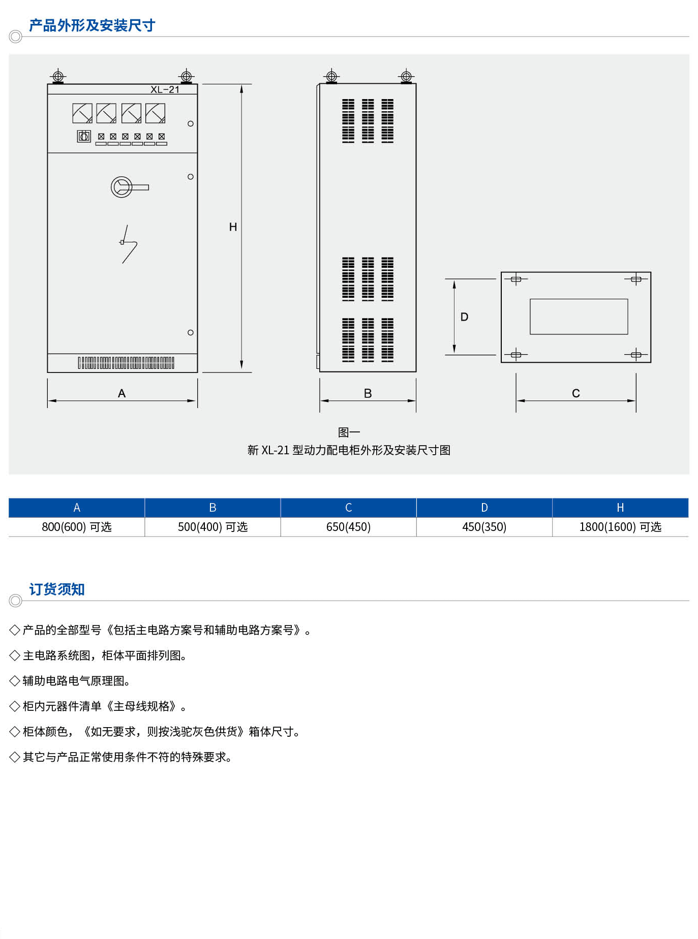 XL-21動力柜廣泛用于發(fā)電廠及工礦企業(yè)中,在三相交流500以下三相三線、三相四線、三相五線等配電系統(tǒng)中作動力或照明配電之用,戶內(nèi)靠墻安裝,屏前操作,屏前檢修;箱體為全封閉結(jié)構(gòu),由C型材或8MF型材拼裝而成。箱內(nèi)采用新型旋轉(zhuǎn)式負(fù)荷隔離開關(guān).可帶負(fù)荷操作,正面門上裝有電壓、電流指示儀表以及信號燈、按鈕、轉(zhuǎn)換開關(guān)等主令元件。本配電箱內(nèi)采用自行設(shè)計的新型組件,結(jié)構(gòu)緊湊,造型美冊大方,維護(hù)方便,多種接線方案可供用戶選擇,是替代老型XL-21動力箱的理想產(chǎn)品。